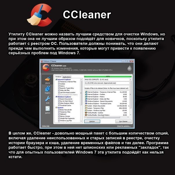 Наверное, у каждого владельца ПК появлялись проблемы с нормальной его работоспособностью. Причиной тому является отсутствие регулярного обслуживания не только со стороны железа, но и в области ПО. Все дело в том, что при удалении и установке софта, постоянно серфинге сайтов и использовании некачественного программного обеспечения система засоряется вирусами, остаточными файлами и т.д. Именно по этой причине компьютер начинает сильно глючить, заставляя нервничать своего владельца. Выходом из этой ситуации является использование специальных программ, которые будут следить за работой системы вашего ПК. Весь нижеперечисленный софт позволяет не только следить за системой, но и имеет ряд других полезных функций. Итак, приступим! | |